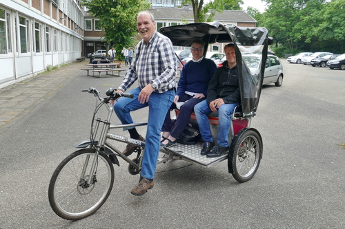 Nach einer etwa einstündigen Rikscha-Fahrt mit Schulleiter Jörg Masuch durch Düsseldorf verabschiedete sich am 23. Juni 2021 das Kollegium des Riehl-Kollegs mit einer kleiner Feier von Frau Wilhelm.