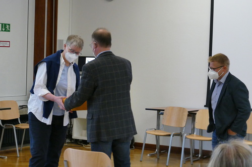 Frau Wilhelm kümmerte sich fast 11 Jahre um viele Belange unseres Kollegs und der Kolleginnen und Kollegen und sie war für fast alle Bereiche in der Verwaltung des Riehl-Kollegs - von der Personaleinstellung bis zur Haushaltsplanung - verantwortlich. Wie vielfältig ihre Aufgabenbereiche waren, wurde in der Rede des Schulleiters deutlich.